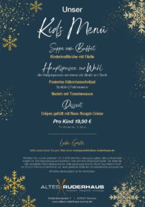 Unser Küchenchef im Alten Ruderhaus hat schon jetzt ein ganz besonderes Weihnachtsmenü für Sie zusammengestellt. Freuen Sie sich auf feinste saisonale Spezialitäten, liebevoll zubereitet und perfekt für genussvolle Stunden im Kreis von Familie, Freunden oder Kollegen.